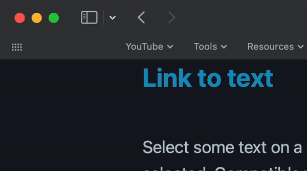 Select some text on a webpage and click the bookmarklet. A new tab opens with a URL that links directly to the text you've selected. Compatible with recent browsers that support the #:~:text URL fragment.
